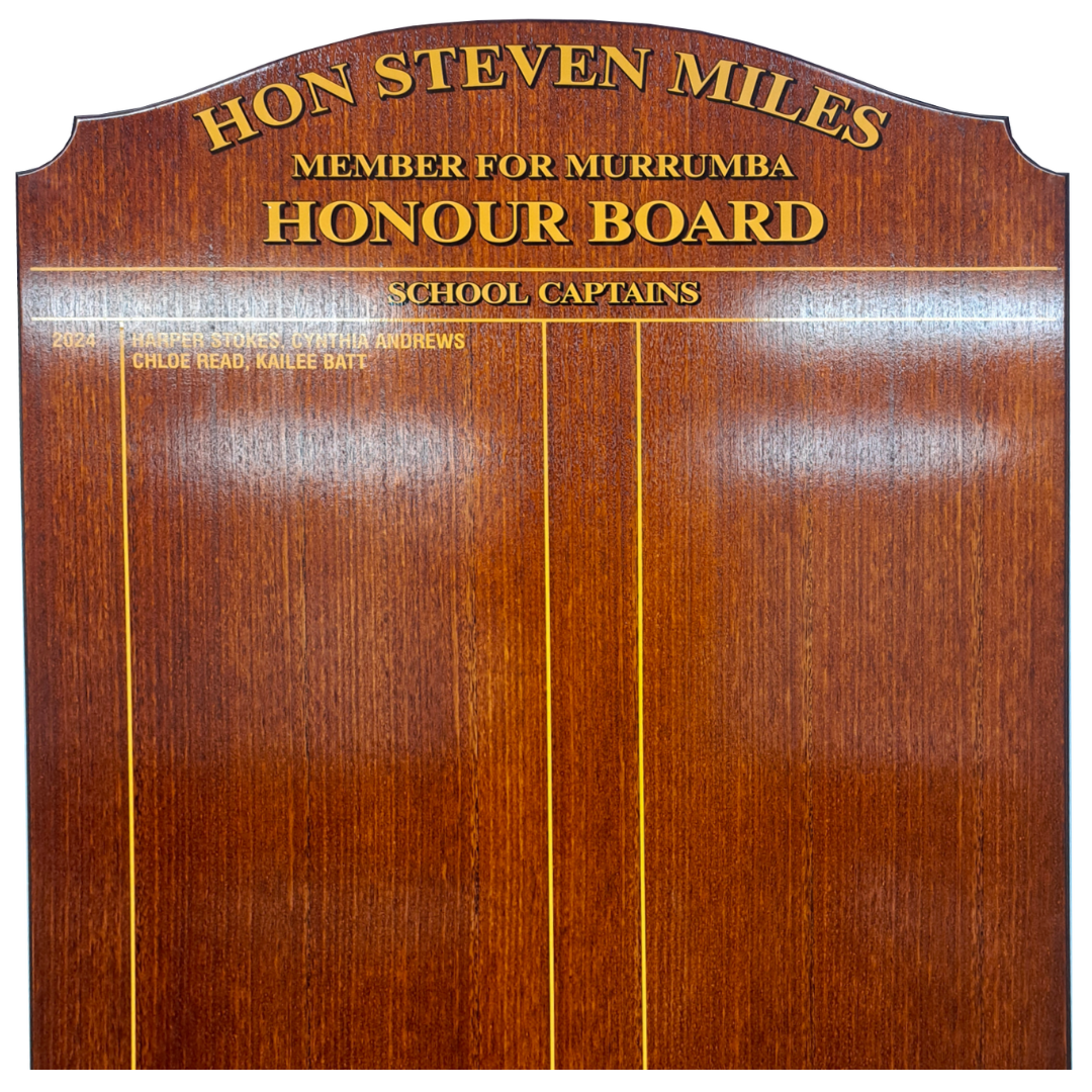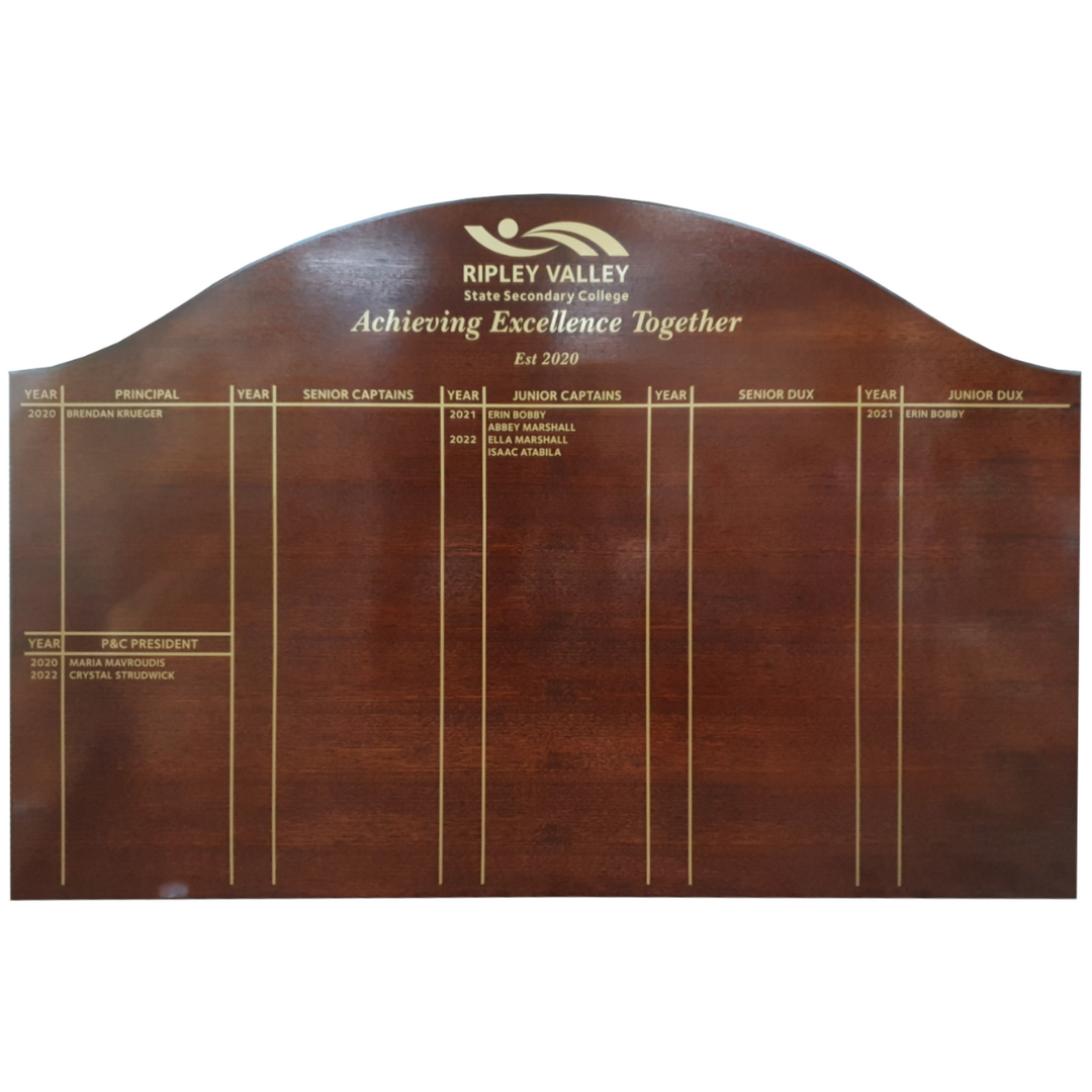 Honour Board 2 features a traditional arched-top design, crafted to deliver a polished and enduring finish suitable for schools, clubs, and corporate environments. This model supports multiple layout formats — including life members, award recipients, and multi-column listings — making it adaptable to any organisation’s needs.