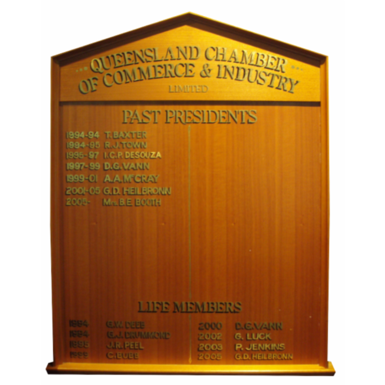 Honour Board 5 features a refined, traditional honour board style designed for schools, clubs, corporate offices, and community organisations. Its classic proportions and elegant timber finishes make it ideal for recognising service, achievements, and leadership in a timeless, formal presentation.