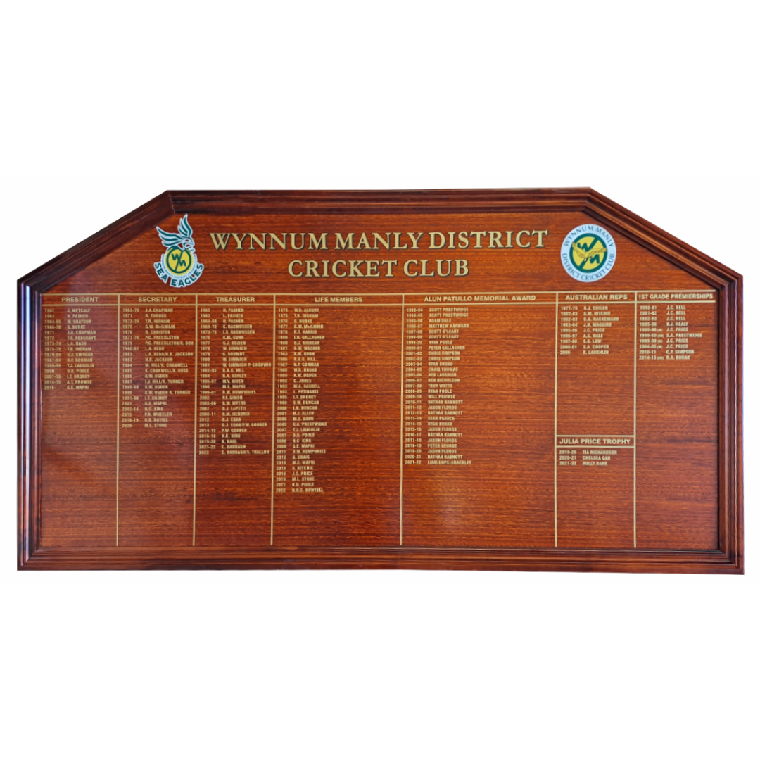 Honour Board 5 features a refined, traditional honour board style designed for schools, clubs, corporate offices, and community organisations. Its classic proportions and elegant timber finishes make it ideal for recognising service, achievements, and leadership in a timeless, formal presentation.