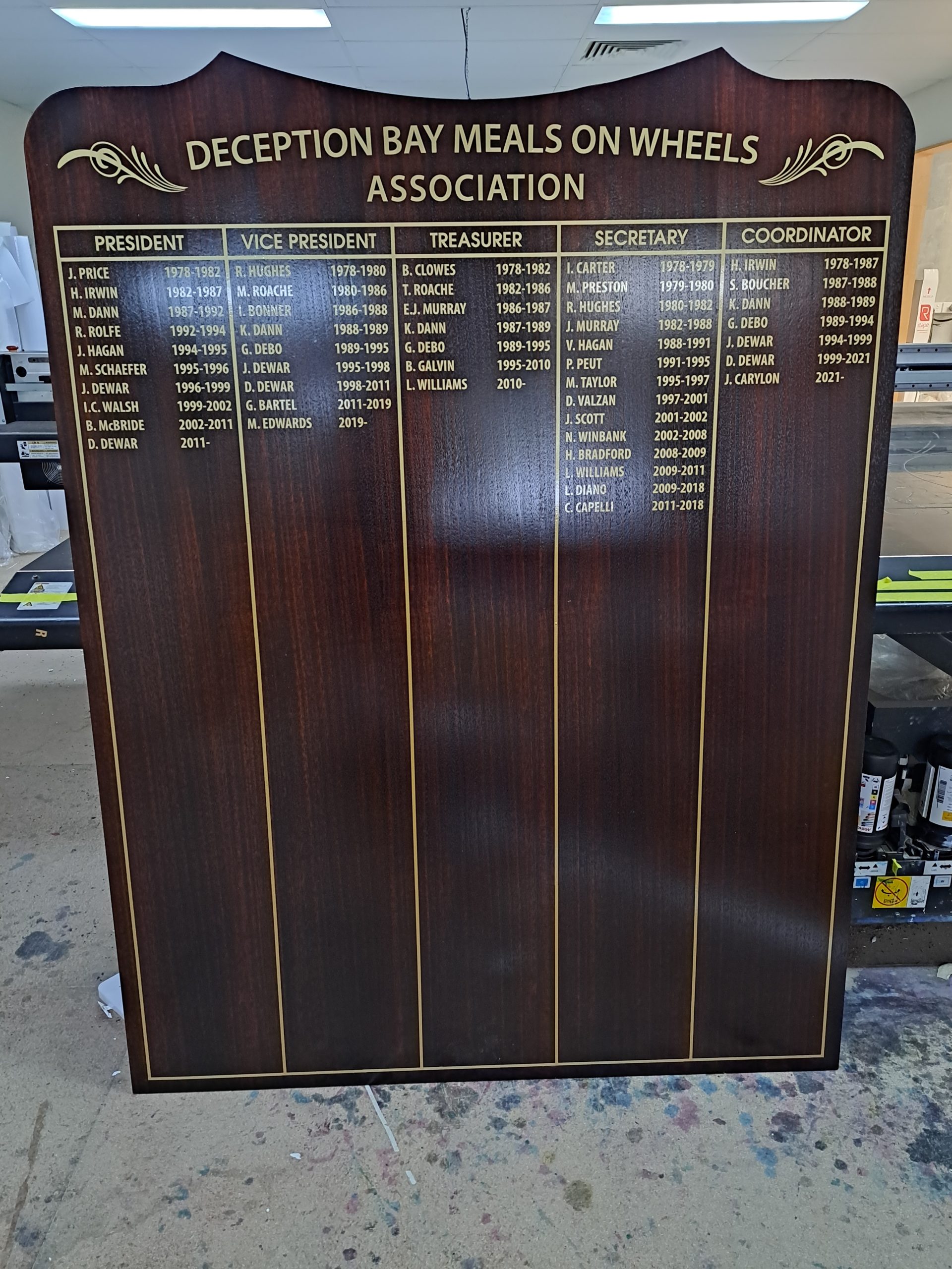 At SignAge Brisbane, we take pride in combining traditional craftsmanship with modern technology to create honour boards that stand out in both design and quality. Every board is carefully planned, from initial sketches to engraving and installation, ensuring a seamless process and exceptional results.